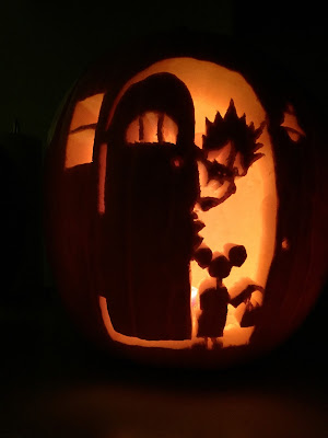 Now this could mean one of two things: either someone is preparing to burn Tobey Maguire in effigy for that dance scene in Spider-Man 3 (which I liked, suck it, haters), or it's Halloween season again! This is perfect, because it gives me an excuse to drone on at length about one of my favorite things: pumpkin carving! Avid readers of my blog may recall my earlier installment about pumpkin carving pioneers Carve-O-Lantern, as well as the sequel post about their product line expansion. Well, there's still plenty of meat on this bone, so I'm diving into a pumpkin PIE-le of patterny goodness to bring you this retrospective!