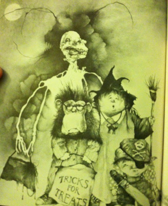 After The Eerie Series, Gammell would achieve notoriety as the illustrator for Alvin Schwartz's collection of horror folktales. And though he would go on to provide the imagery for more jolly books like Wake Up, Bear...It's Christmas and Wing-A-Ding, he would still make trips back into the realm of the supernatural. As such, he was the perfect fit for this collection of Halloween poems, entitled (drumroll please)...Halloween Poems.