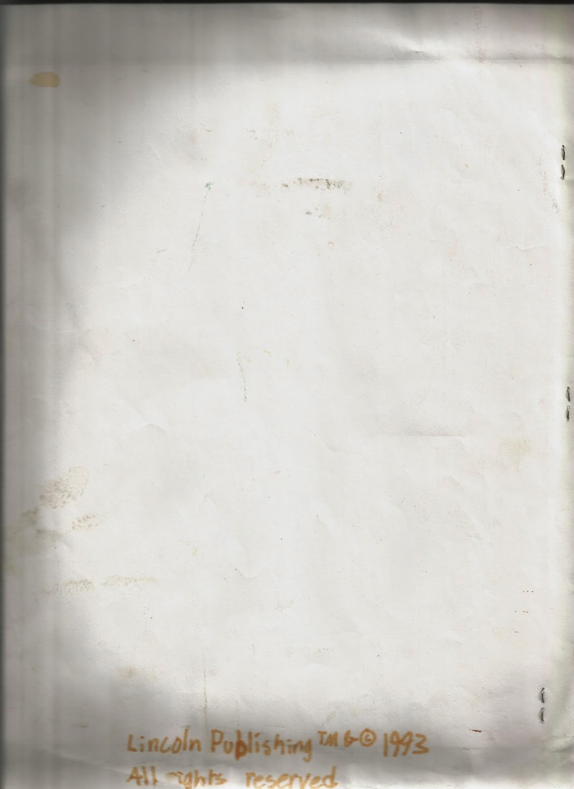 Up next we have...nothing. Well, not quite nothing. We do have the back cover with corresponding copyright date and publishing company, printed in the classiest shade of neon orange I can find, but that's it.