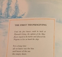This page has the distinction of making the Mayflower (in the upper left corner) resemble a ghostly pirate galleon. Based on the illustration, if you had told me that the first Thanksgiving was a party thrown by a bunch of skeletons in tattered rags, I wouldn't have been the least bit surprised.