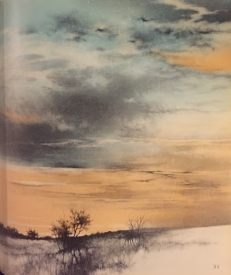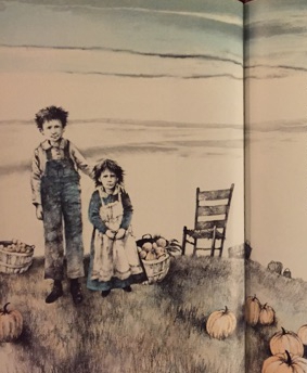 Finally, there's this gorgeous, if desolate, landscape. Though certainly not the Thanksgivingiest image you've ever seen, it is emblematic of the book as a whole: a lovely, serene showcase for Stephen Gammell's artistic talents. Though the man may be most famous for his chilling portrayals of eyeless specters and macabre hellscapes, the fact is that his creative vision and ability to execute it are second to none. His work elevates whatever material it accompanies to an absurd degree. Hell, the strength of his name alone made me buy a book of Thanksgiving poems! You wanna talk holiday miracles? Well that's one right there.