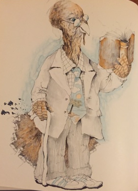 And speaking of morbid reflections on Thanksgiving from a turkey's perspective, we have this bit of gallows humor right here. An ugly turkey (wearing a hat?) gloats as his better-looking compatriots are slaughtered and consumed on Thanksgiving Day. It's probably the closest this book comes to actual horror. One thing is certain: Cornelius would certainly be far too dignified to engage in such schadenfreude.