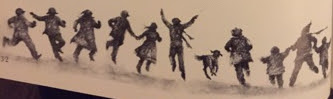 This is a rather lonely, eerie illustration that could very well depict the surface of some alien planet. But at least the little guy down in the corner is happy, at least according to the poem.