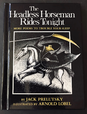 Prelutsky's poetry is as bewitching and relentless as ever, and the grim, Edward Gorey-esque illustrations from Arnold Lobel (who you may remember from the far less fatalistic Frog and Toad Are Friends) continue to provide the perfect wickedly fun accompaniment to the proceedings. To wit, gems like the titular Headless Horseman, a Grim Reaper figure who stalks the night: