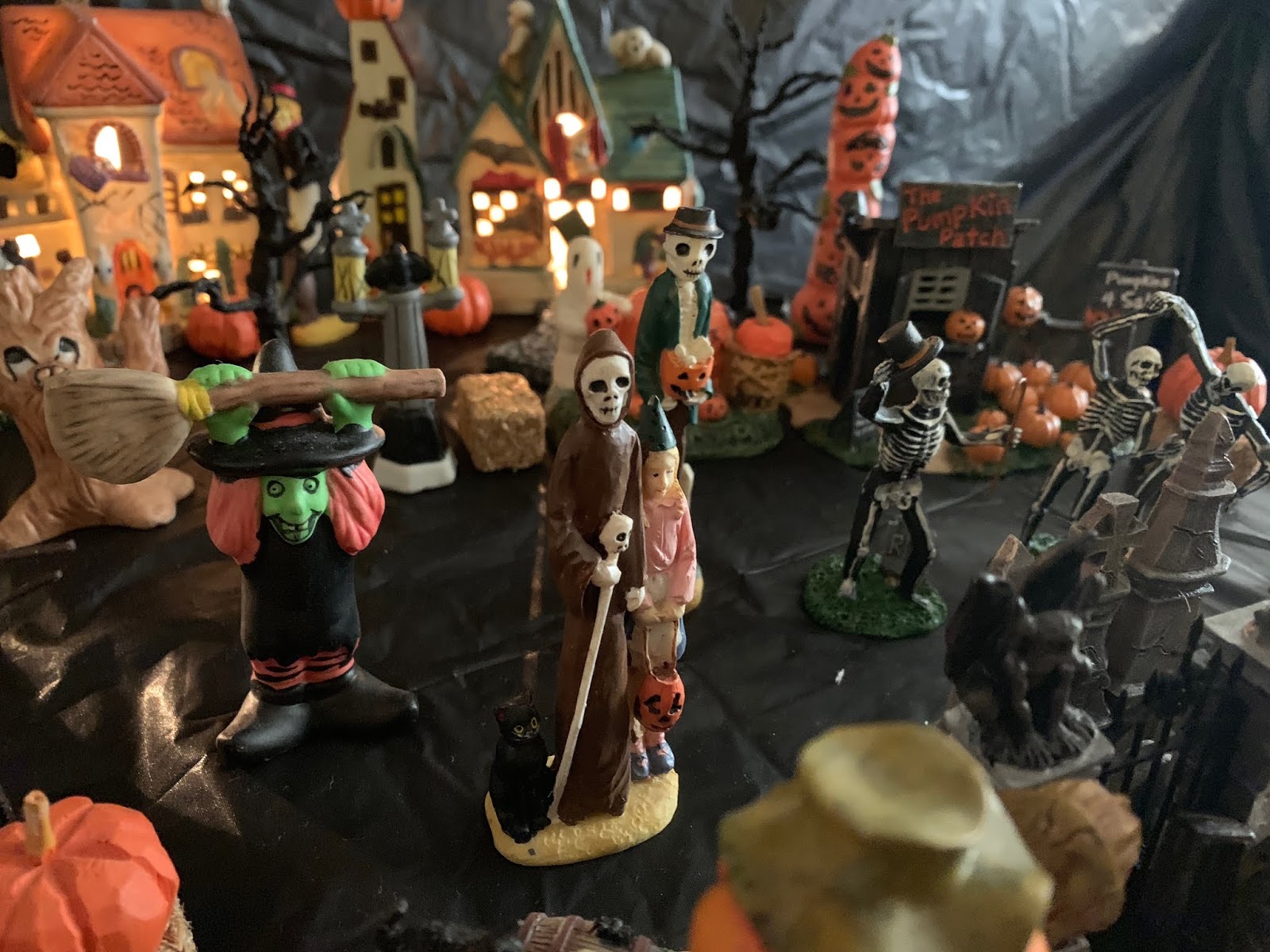 As I set the spooky town up a few days ago, I scaled it back a bit from my previous setup; despite picking up a some new additions to the macabre menagerie, a more intimate, less sprawling approach felt appropriate this year. I think it came together pretty well, and stands as a symbol of endurance in the face of tragedy. I probably should have draped an American flag behind it or something.